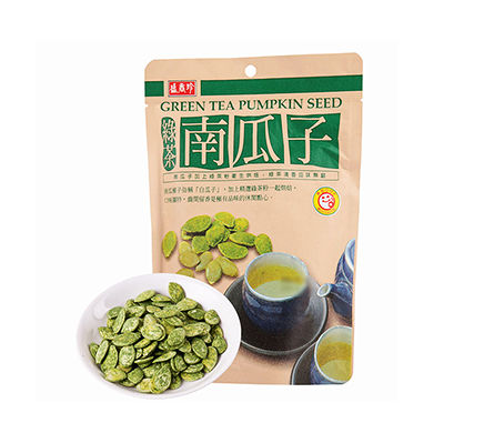 由南瓜子加上绿茶粉等制成的抹茶口味的南瓜子。